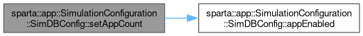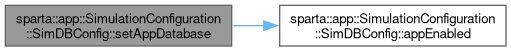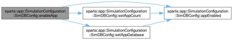 Tell the simulation to enable the given app. Unless otherwise specified, the database will be the executable name with a '.db' file extension, and one app instance will be available.