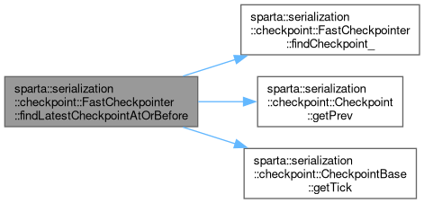 | Finds the latest checkpoint at or before the given tick starting at the from checkpoint and working backward. If no checkpoints before or at tick are found, returns nullptr. | |